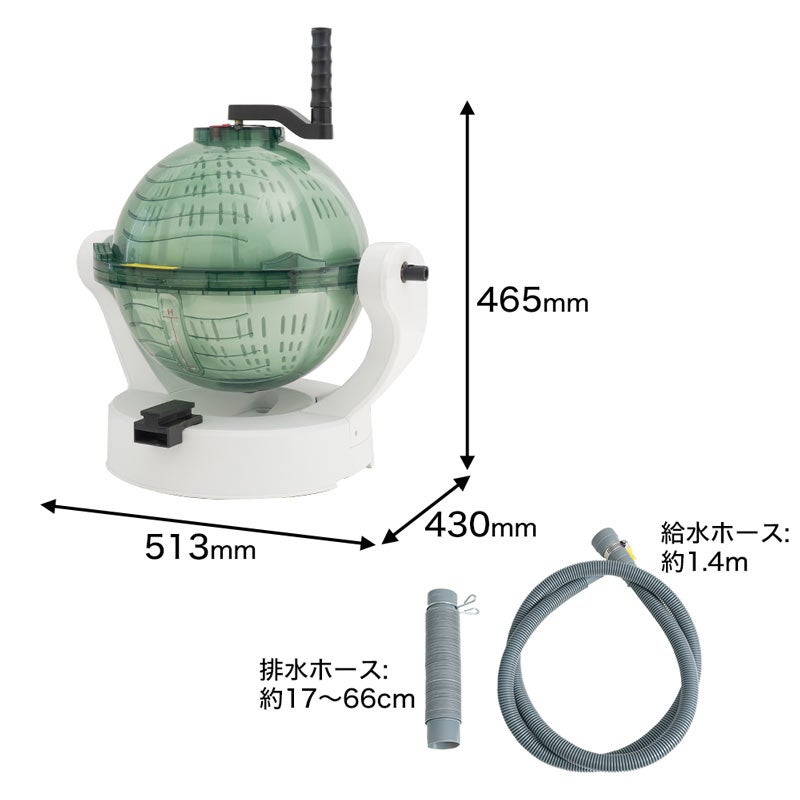 ・セット内容/本体(土台、下半球)、上半球、固定スタンド、ハンドル、給水ホース、
