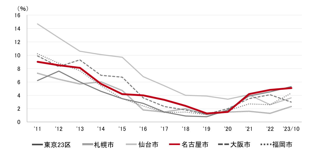 名古屋市 全規模ビル 主要エリア 空室率