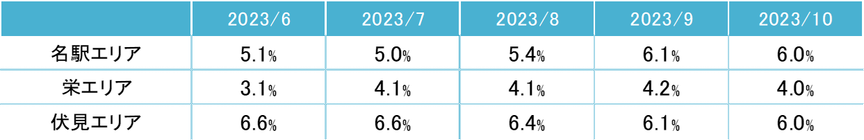 ※1:主要エリア=名古屋市名駅エリア・栄エリア・伏見エリア