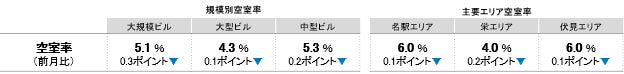 全規模ビル 主要エリア 空室率:「伏見」3ヵ月連続で低下し、5%台が目前に