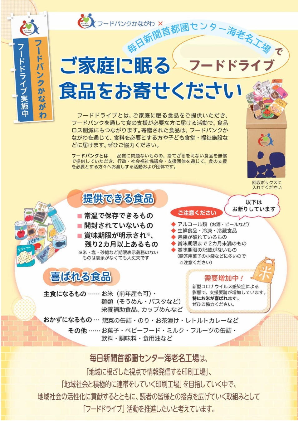 海老名工場の屋上で養殖しているメダカすくいや、川口工場で栽培し各種メディアでも紹介された話題のきくらげ「彩のきくらげ」の直接販売、東日印刷のオリジナルアップサイクル商品のデザイン新聞「つつむ」の店頭販売も行います。また、地元で人気のパンやお菓子、ハンドメイド雑貨、フリーマーケットなど多彩なジャンルの店舗が並び秋の行楽シーズンにぴったりのイベントです。さらに今回初の試みとして、公益社団法人フードバンクかながわ様と連携したフードドライブ(家庭の余剰食品寄付活動)を実施いたします。地域社会への貢献とフードロス削減を目指す温かなご支援をお待ちしております。