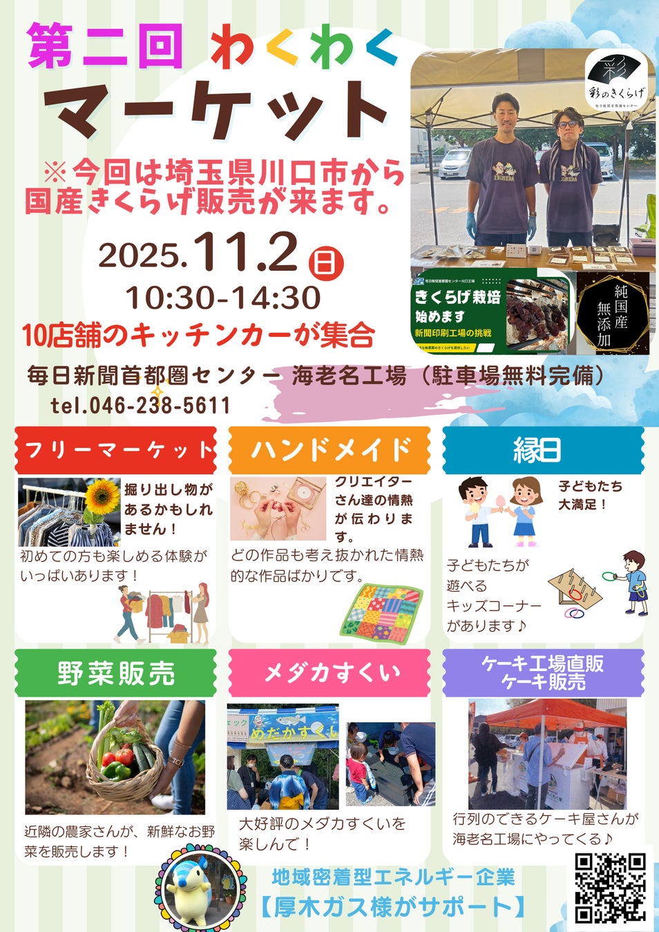 11/2(日)神奈川県海老名市「第2回わくわくマーケット」開催【東日印刷グループ 毎日新聞首都圏センター海老名工場】