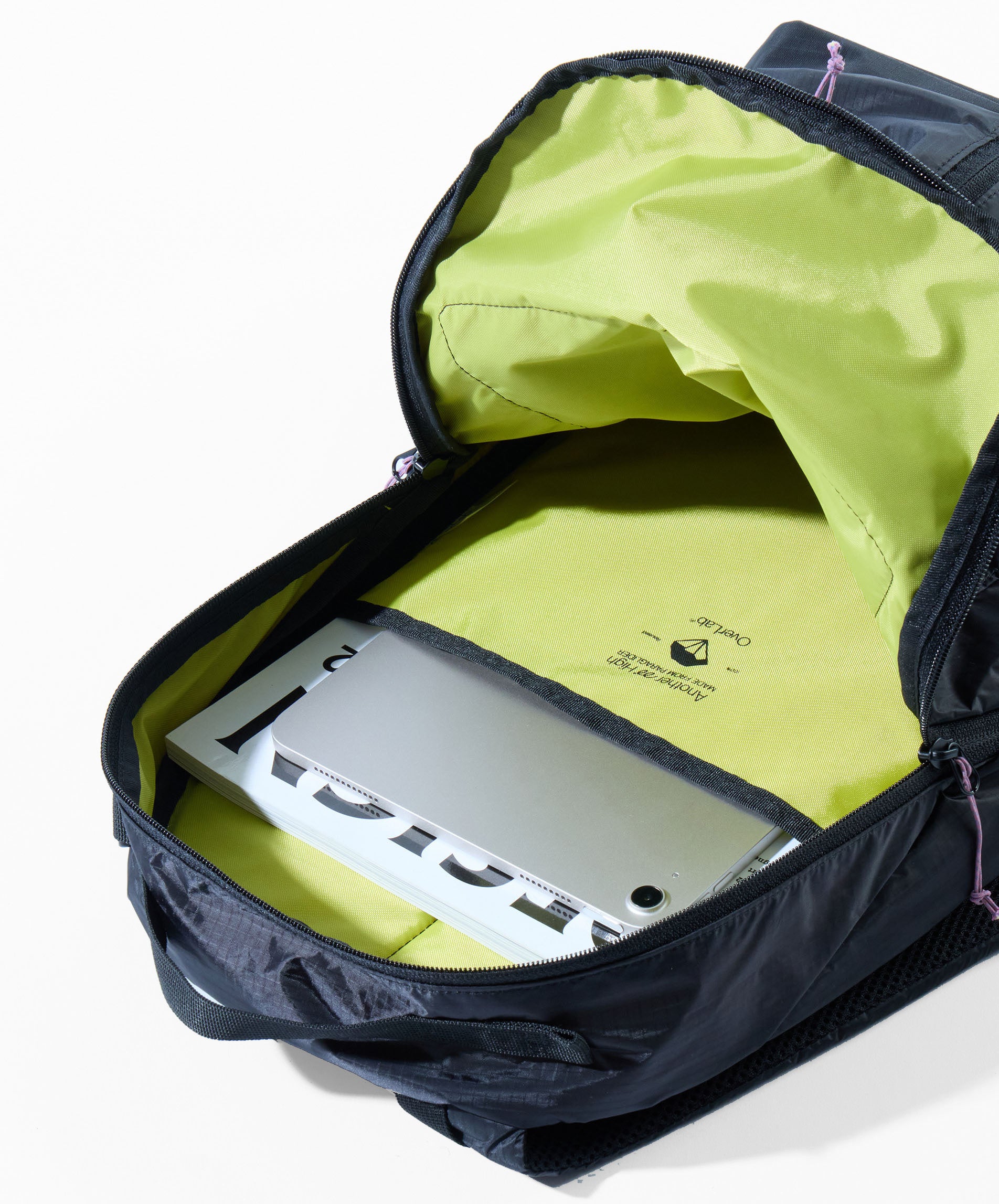 寿命を迎えたパラグライダー素材をアップサイクルして製作された、軽量バックパック。洗練されたラインとミニマルなディテールで仕上げられたデザインは、都市生活のさまざまなシーンに自然に馴染みます。約272gという軽さながら、日常使いに十分な収納力を備え、内部には最大15インチのノートパソコンを収納できるスペースを配置。さらに前面ポケットやDリング、バッグの安定性を高めるチェストバックルなど、機能的なディテールも備えています。通勤や日常使いはもちろん、旅行やアウトドアまで幅広いシーンで活躍する、実用性の高いデイリーバックパックです。【サイズ】45.5 × 30 × 12 cm