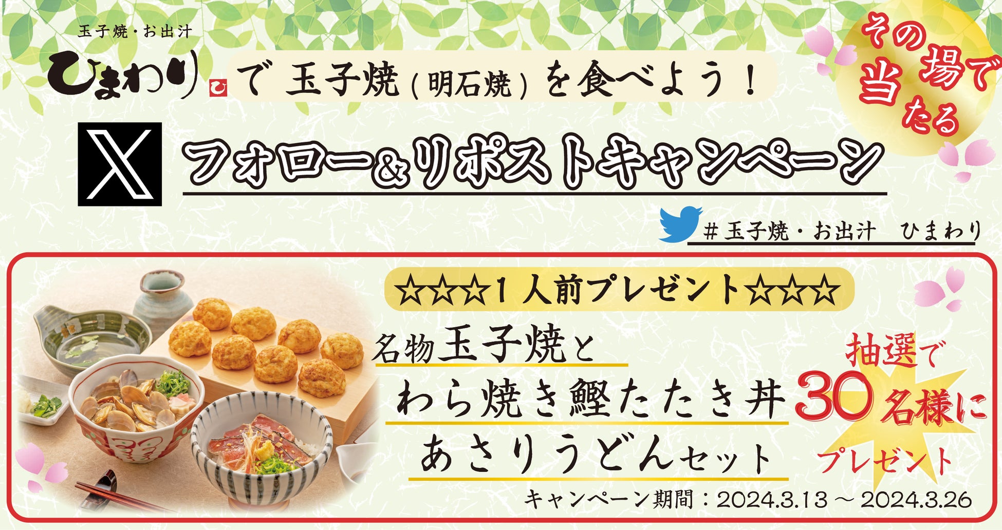 その場で当たる!玉子焼・お出汁 ひまわり公式 Xフォロー&リポストキャンペーンを開催!