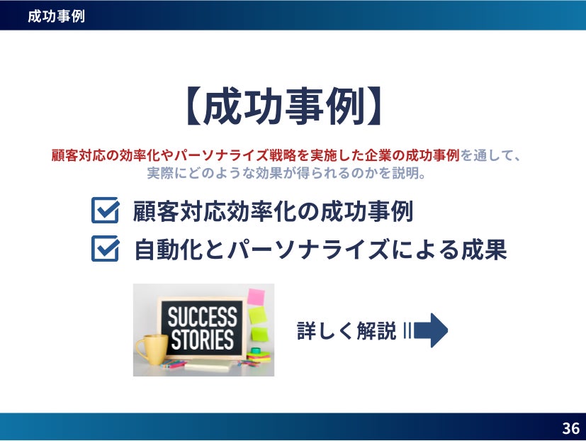 本レポートでは、顧客対応の効率化や自動化とパーソナライズを目指す企業に向けて企業の成功事例についても紹介しています。顧客サービスを向上させるためのアプローチや効果を事例に基づいて解説し、どのようにツールや戦略が機能し、実際にどのような成果を生んだのかを解説しています。