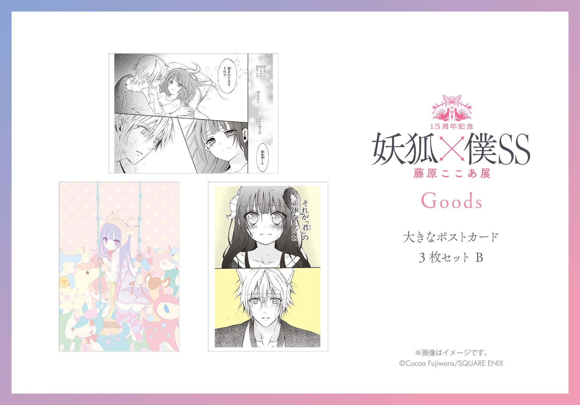 展覧会では、作品生誕15周年を迎える「妖狐×僕SS」をメインに、藤原ここあ先生の作品を展示いたします。