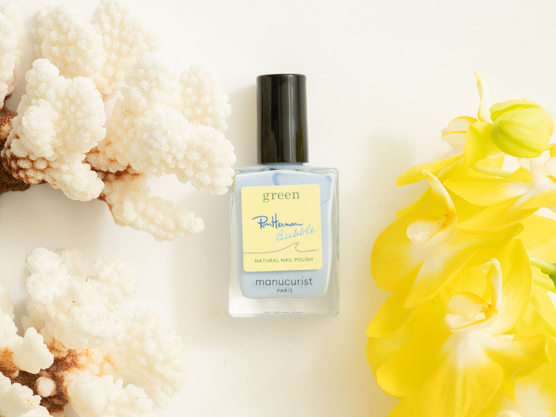 パリ発のヴィーガンネイルブランドmanucurist(マニキュリスト)。パリで生まれ育ち、名だたるメゾンブランドで活躍したガエル・ルブラ・ペルソナージュが、”有害成分を含まない製品をすべての人たちへ届けたい”という思いからスタート。2015年より地球にも爪にも優しいグリーンビューティーネイルの開発を始め、2017年に植物由来成分最大84%で作られたナチュラルネイルカラー「green」をリリースしました。主な成分はジャガイモ、トウモロコシ、サトウキビ、小麦などの植物由来のものであり、爪を保湿し柔らかな状態へと促すココナッツオイルや、爪を強化する働きのあるバンブーエキスとケイ素が配合されています。動物実験が行われていないヴィーガン&クルエルティフリーとして、フランスで開発された製品を展開しています。