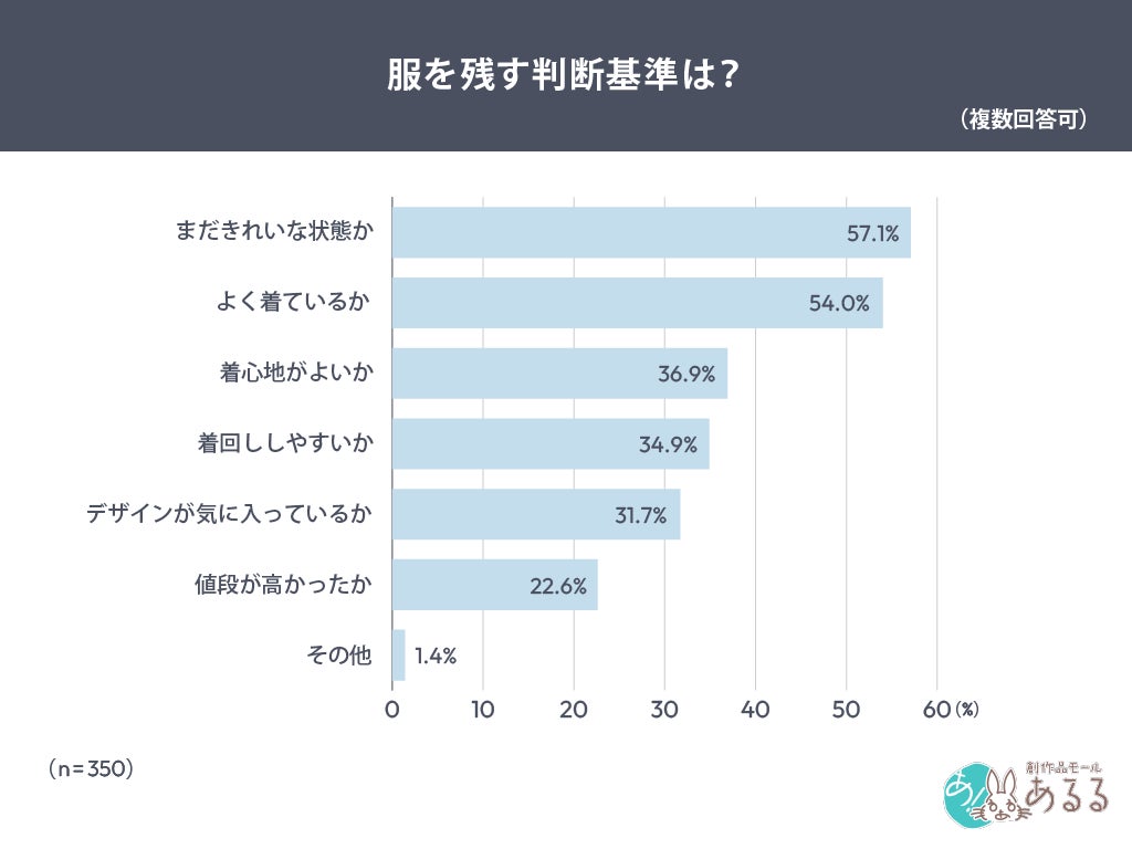 また、断捨離の判断基準として「きれいさ」や「よく着ていること」が挙げられているものの、最終的には、価格やきれいさよりも 「日常でどれだけ活躍しているか」が選ぶ決め手になっていることがわかります。