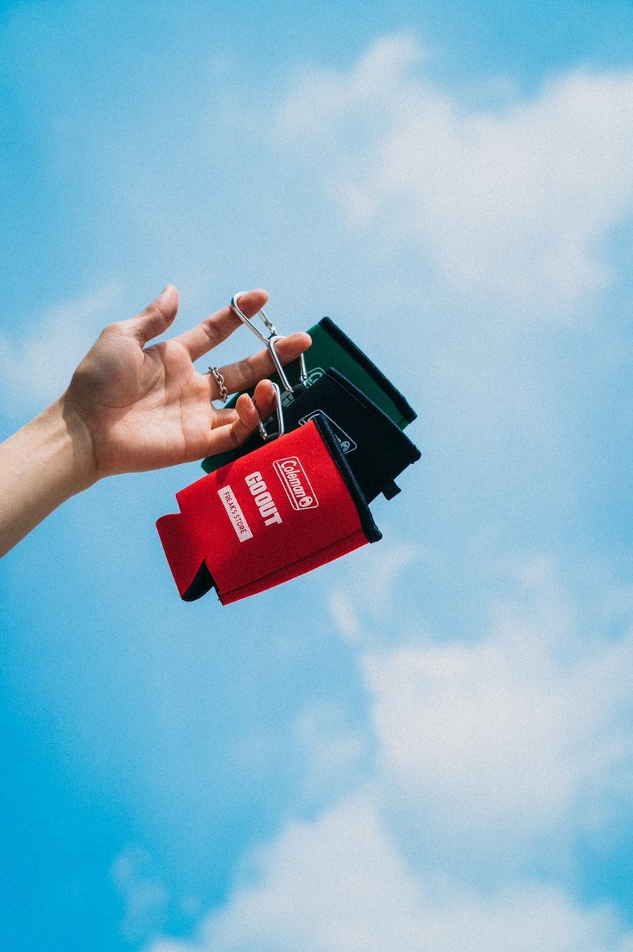 今回のコラボレーションを記念して"FREAK'S STORE"、"coleman"、"GO OUT"3社のロゴ入りクージーをブラック・グリーン・レッドの3色を1セットにしてプレゼント。