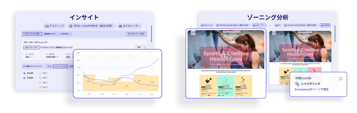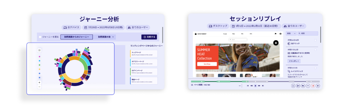 訪問から離脱まで、サイト上またはモバイル端末で顧客がどのような体験をしているかを分析、可視化