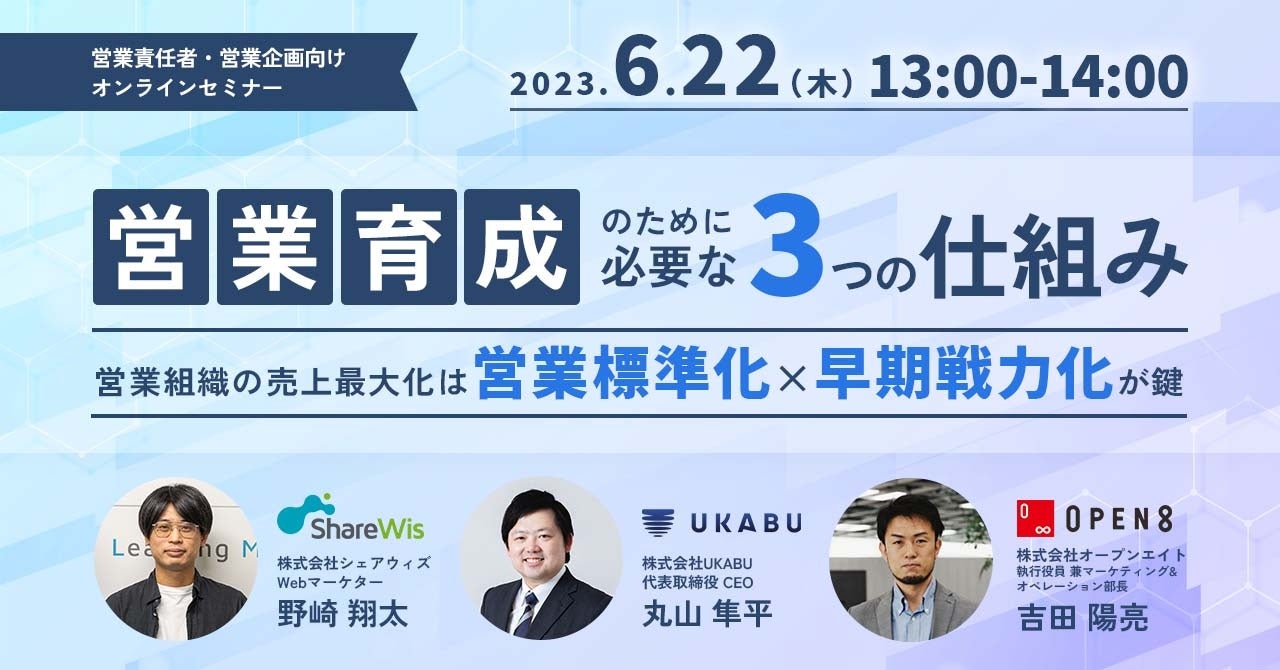 【営業責任者・営業企画向けセミナー】「営業育成のために必要な3つの仕組み ~営業組織の売上最大化は営業標準化×早期戦力化が鍵~」を開催します