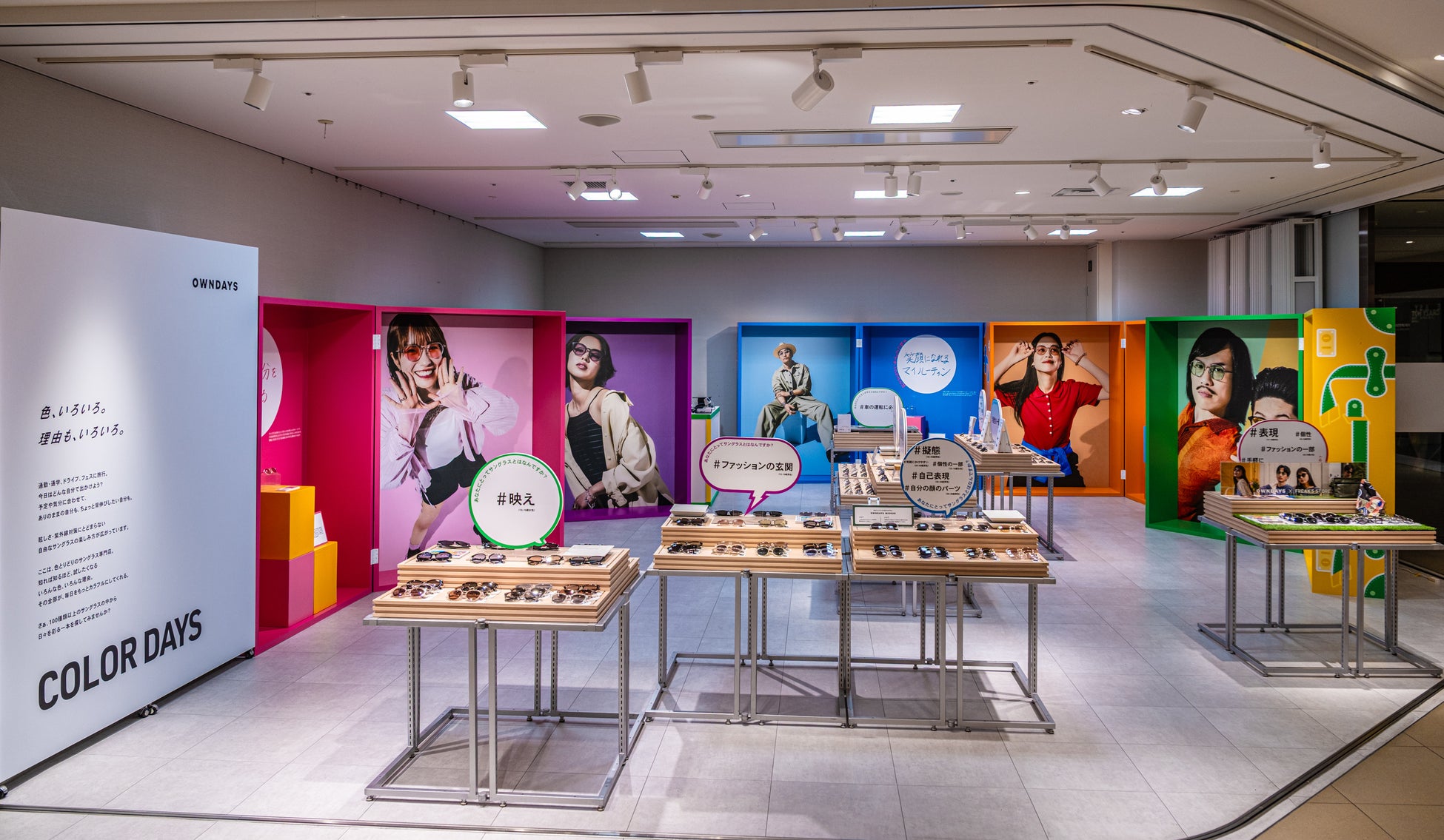 OWNDAYSはサングラス・カラーレンズメガネに特化した、『COLOR DAYS』ポップアップストアを初開催します。店舗では200種類以上のサングラスや、カラーレンズなどを展示・販売を予定しており、多様なスタイルやニーズに対応したラインアップとなっております。本ポップアップストアでは、6名のイメージモデルが、それぞれ厳選したサングラスを紹介。各モデルの選定理由やコメントもご紹介し、商品の魅力や商品の新しい選び方をより深くご体感いただけます。