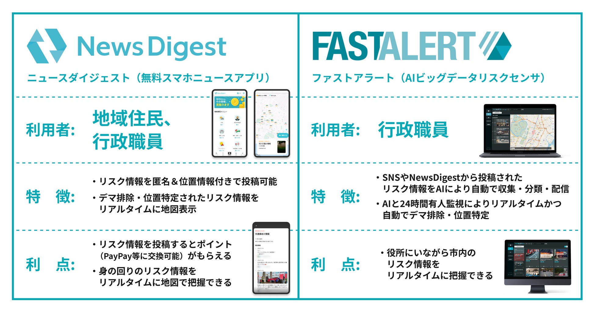 情報収集・発信のデジタル化推進、防災DX推進や安全安心なまちづくりを形成していくためのソリューションとして、連携協定に基づき、地方自治体が地域に「NewsDigest」の利用を推進していく取組は四国地方では初(全国7例目)となります。