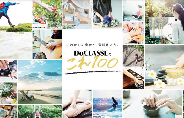 このような時代背景を受け、DoCLASSEでは、ミドルエイジ女性が“これからの人生でやりたいこと”を叶えるお手伝いをしたい!これからの人生をもっと輝かせるきっかけと出会って欲しい!という想いのもと、大人女性を応援するプロジェクト「DoCLASSE これ100プロジェクト」を発足いたしました。
