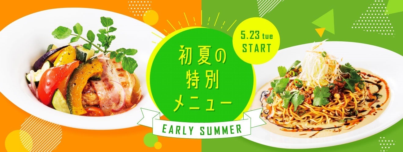「彩り野菜のハンバーグ」は、パプリカ、なす、ズッキーニなど夏野菜をふんだんに使用し、ライム果汁とレモン酢のソースでさっぱりとお召し上がりいただける1品です。 「冷たい汁なし担々麺」は、花椒(ホアジャオ)の風味がピリッと効いた本格的な味、チーマージャンやラー油などが味に深みと変化を与え、濃厚な味わいに、さらにお好みでお酢を加えるとさっぱりとした味わいになります。初夏にぴったりの2品をぜひご堪能下さい。