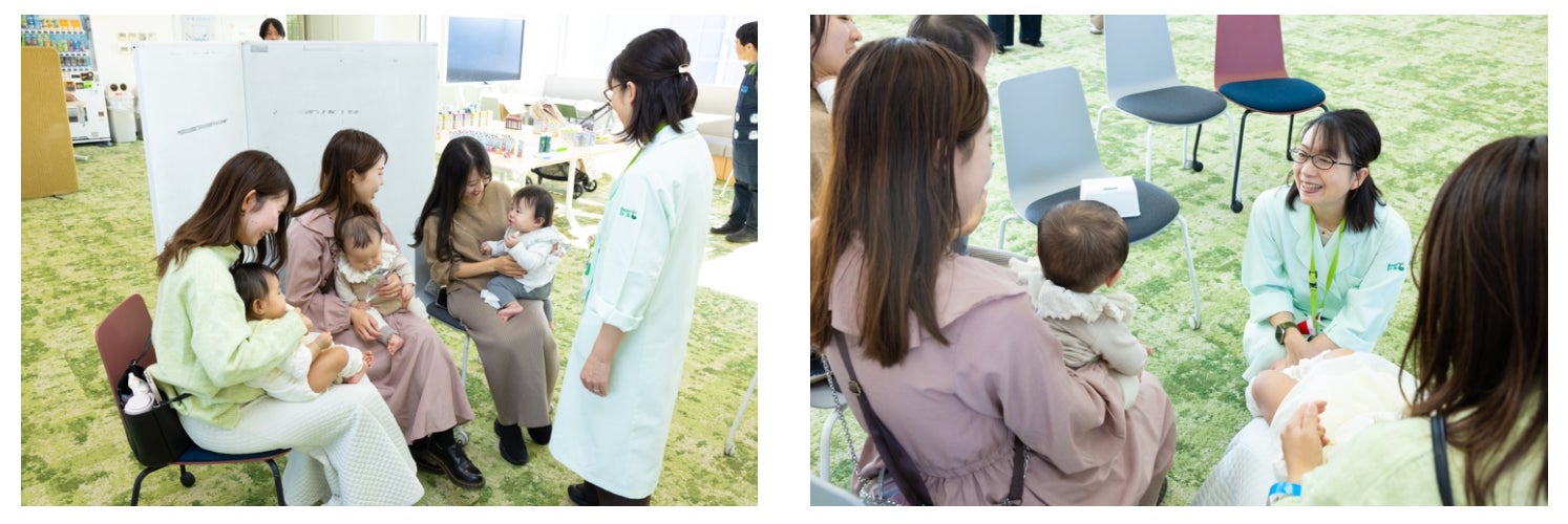 生まれた時からずっと「すこやかM1」をご愛用いただいていることや、薬用スキンケアシリーズがお子さまの肌に合っていて気に入っているという話、「液体ミルク すこやかM1」のアタッチメントの便利さ、また妊娠期のころから葉酸サプリを使用していたことからアンバサダーにご応募いただいたことなど、アットホームな会話からイベントがスタートしました。