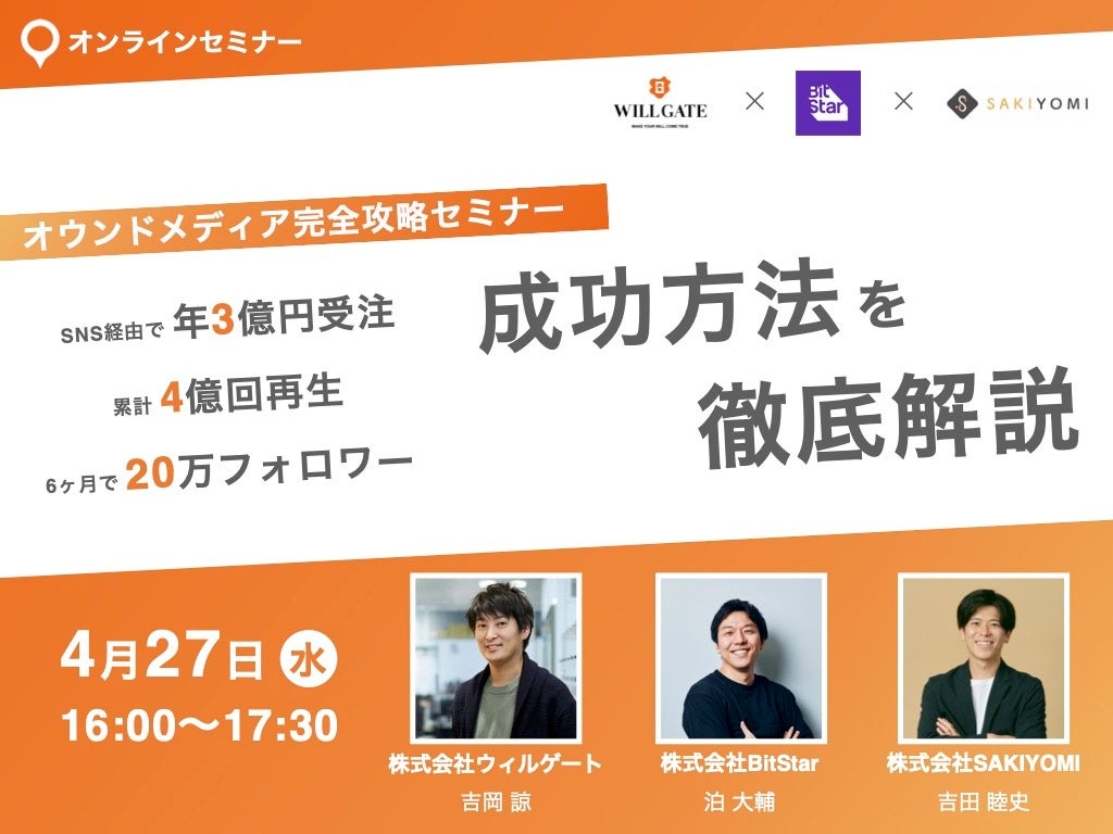 ウィルゲート、BitStar社とSAKIYOMI社と《オウンドメディア完全攻略》をテーマにオンラインセミナーを開催
