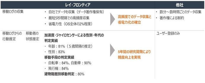 レイ・フロンティアは、AIを駆使した解析技術と高精度な位置情報・行動データを基盤とし、人流調査事業、システムライセンス事業、オーダーメイド事業を展開してきました。開発・運営する行動分析プラットフォーム「SilentLog Analytics」や位置情報エンジン「SilentLog SDK」により、業界トップクラスの行動推定精度と技術的優位性(*1)を確立しています。