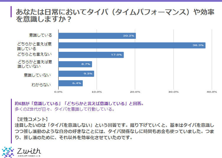Z世代の本音を探るマーケティング組織「Zwithラボ」がZ世代376人に「タイパ」に関する意識調査を実施。調査とあわせて行ったZ世代へのインタビューから見えた「タイパとZ世代の消費者意識」について解説