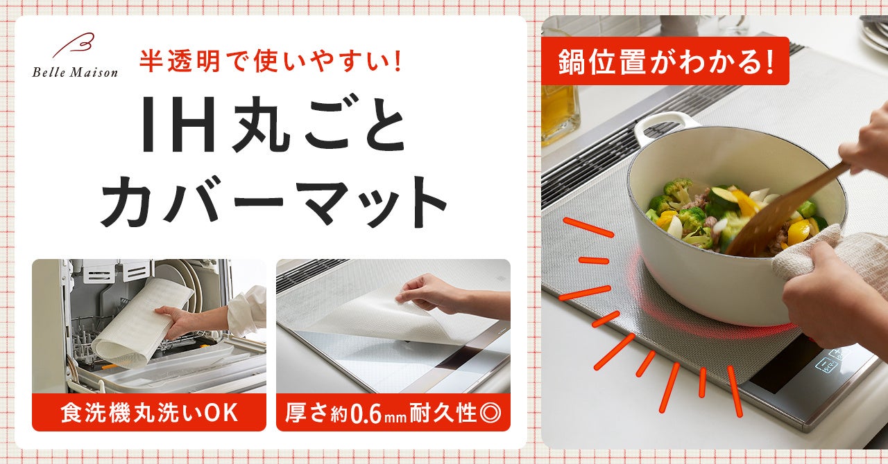 株式会社千趣会(本社:大阪市 代表取締役社長:梶原健司 以下千趣会)の通販事業ベルメゾンは、「IHを丸ごとカバーできる焼け焦げ防止IHマット」を12月20日(水)よりベルメゾンネットにて販売開始します。(https://www.bellemaison.jp/) コンロ全体をカバーする半透明タイプのIHマットは、これまでにない新しい商品※です。 ※自社調べ、2023年12月現在