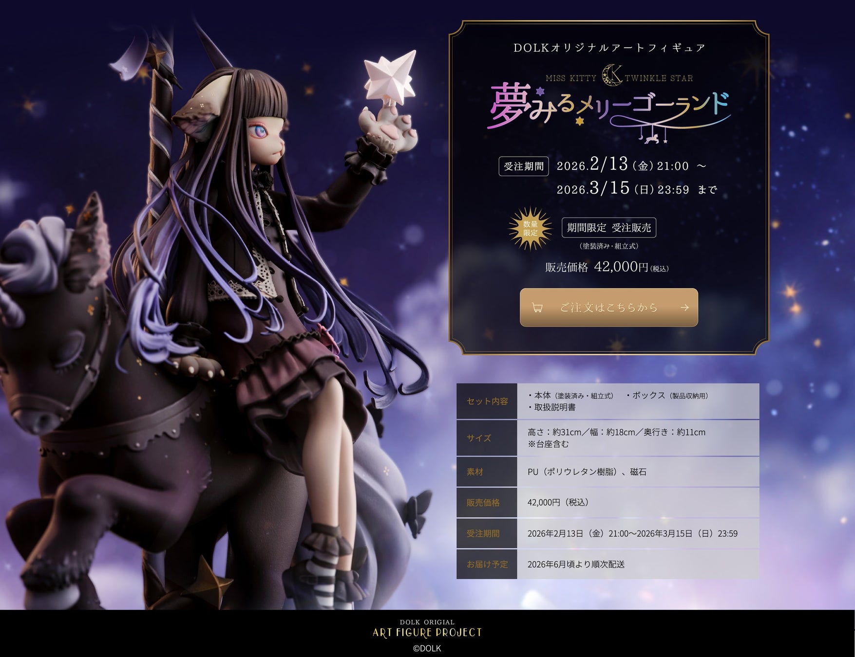 ドールの企画、販売を展開するDOLKは、「Miss Kitty Twinkle Star」アートフィギュアを2026年2月13日(金)より受注販売いたします。