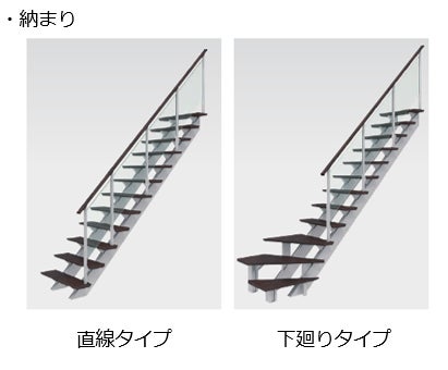 ・直線階段 989,000円(直線タイプ14段 片側樹脂パネル手すり 踏板幅850㎜)