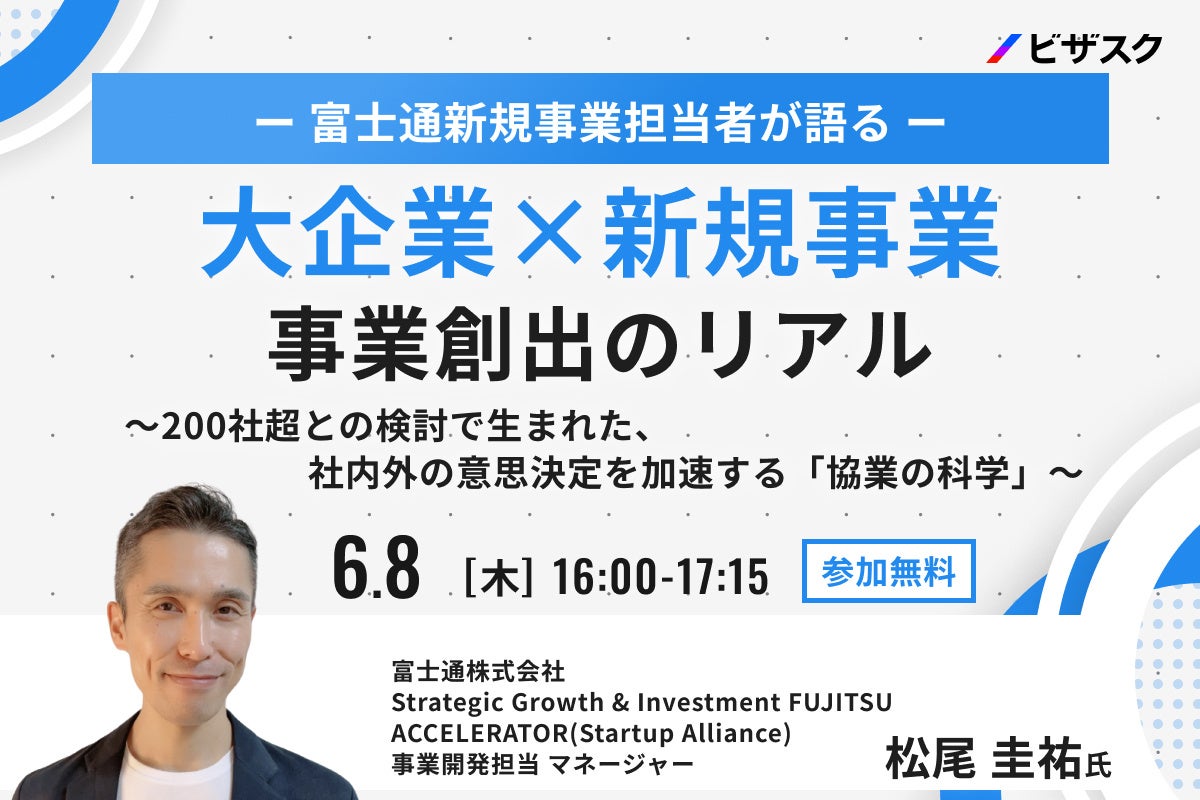 【6/8(木)16時】富士通新規事業担当者が語る「大企業×新規事業 事業創出のリアル〜200社超との検討で生まれた、社内外の意思決定を加速する『協業の科学』〜」無料オンラインセミナーを開催