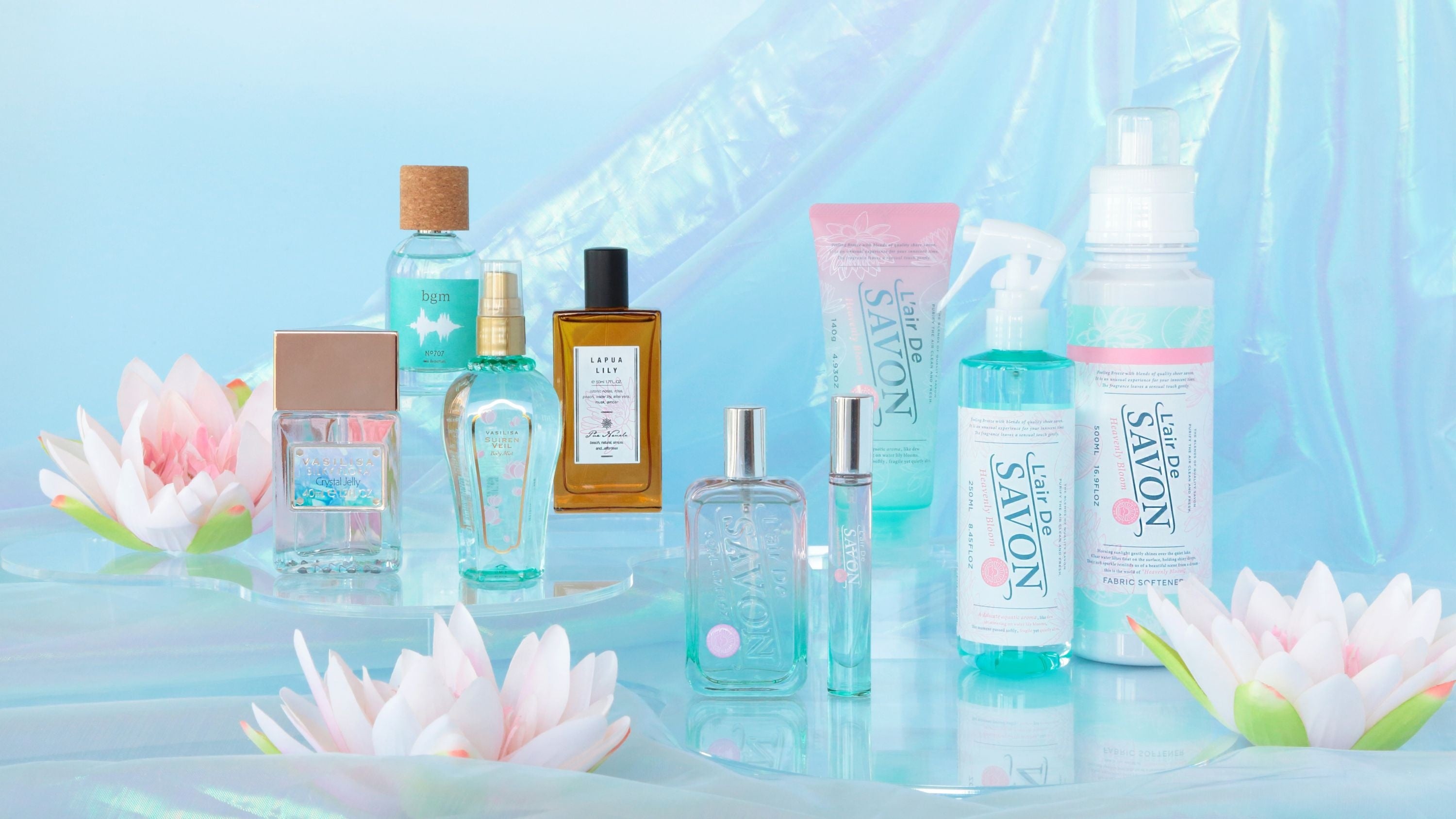 香水をはじめ、ボディミスト、ボディジェル、ファブリックスプレー、柔軟剤と、日常のあらゆるシーンで睡蓮の香りを楽しめる多彩なアイテムをご用意しました。