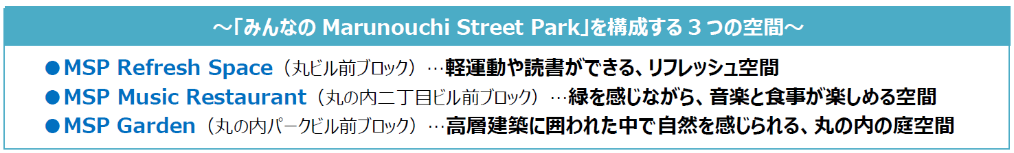 (NPO法人 大丸有エリアマネジメント協会/一般社団法人 大手町・丸の内・有楽町地区まちづくり協議会/三菱地所株式会社)