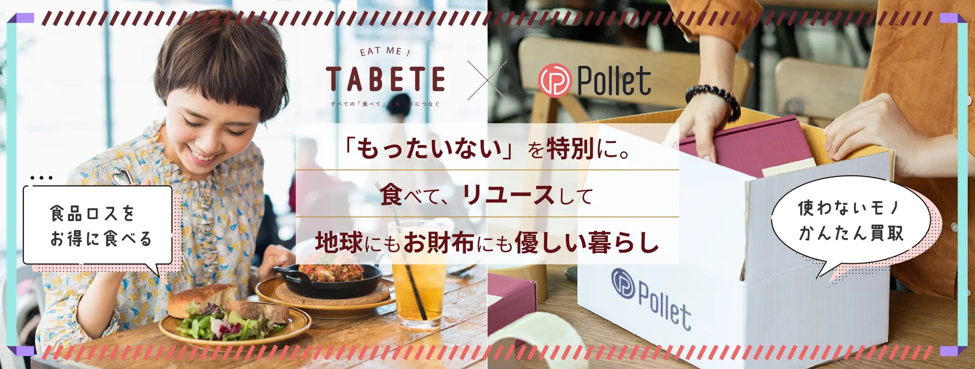 TABETEはこの度、家でいらなくなってしまったものを廃棄するのではなく、買取を通し誰かがリユースすることで資源を大切にする「Pollet」の想いに共感し、連携する運びとなりました。