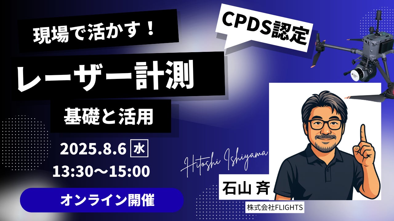 株式会社FLIGHTS(本社:東京都品川区、代表取締役:峠下 周平)の測量士・技術士(建設部門)である石山 斉が、2025年8月6日(水)に開催される土木Base CSTオンラインセミナー「現場で活かす!レーザー計測の基礎と活用」に登壇することをお知らせいたします。