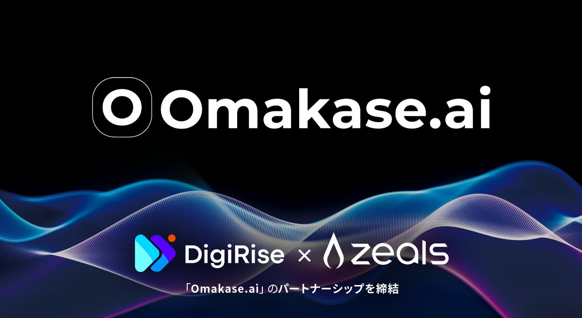 接客AIエージェントを提供する株式会社ZEALS(所在地:東京都目黒区、代表取締役:清水正大、以下「ジールス」)は、米国をはじめとするグローバル市場で高い評価を獲得している接客AIエージェント「Omakase.ai」を始めとする各種AIサービスの本格的な日本語展開に伴い、「法人リスキリング®」や「楽ジョブAI」等のAI事業を手掛ける株式会社デジライズ(本社:東京都港区、代表取締役:茶圓 将裕、以下「デジライズ」)と、企業のAIエージェント活用推進におけるパートナーシップを締結いたしましたことをお知らせします。