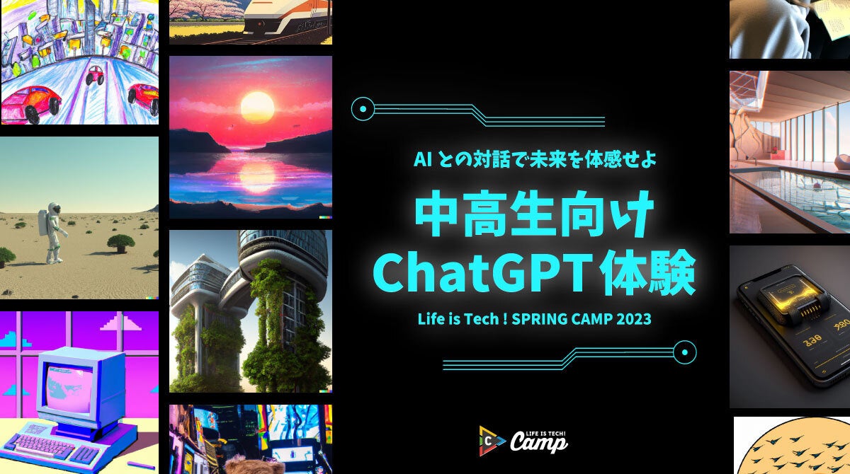 Life is Tech ! Spring Camp 2023では革新的技術や最先端の知見を紹介するとともに、中高生がDALL・E 2やChatGPTを実際に体験しながら、将来の可能性を広げるテクノロジーについて学ぶ機会を提供します。