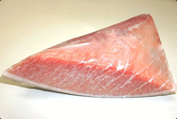 ロのカマの部分は重量にして約2%、さらに切りネタにする場合はそこからわずか10%しか取れず、70kgのミナミマグロから取れるカマトロはわずか140g、全体の0.2%という大変貴重な部位です。