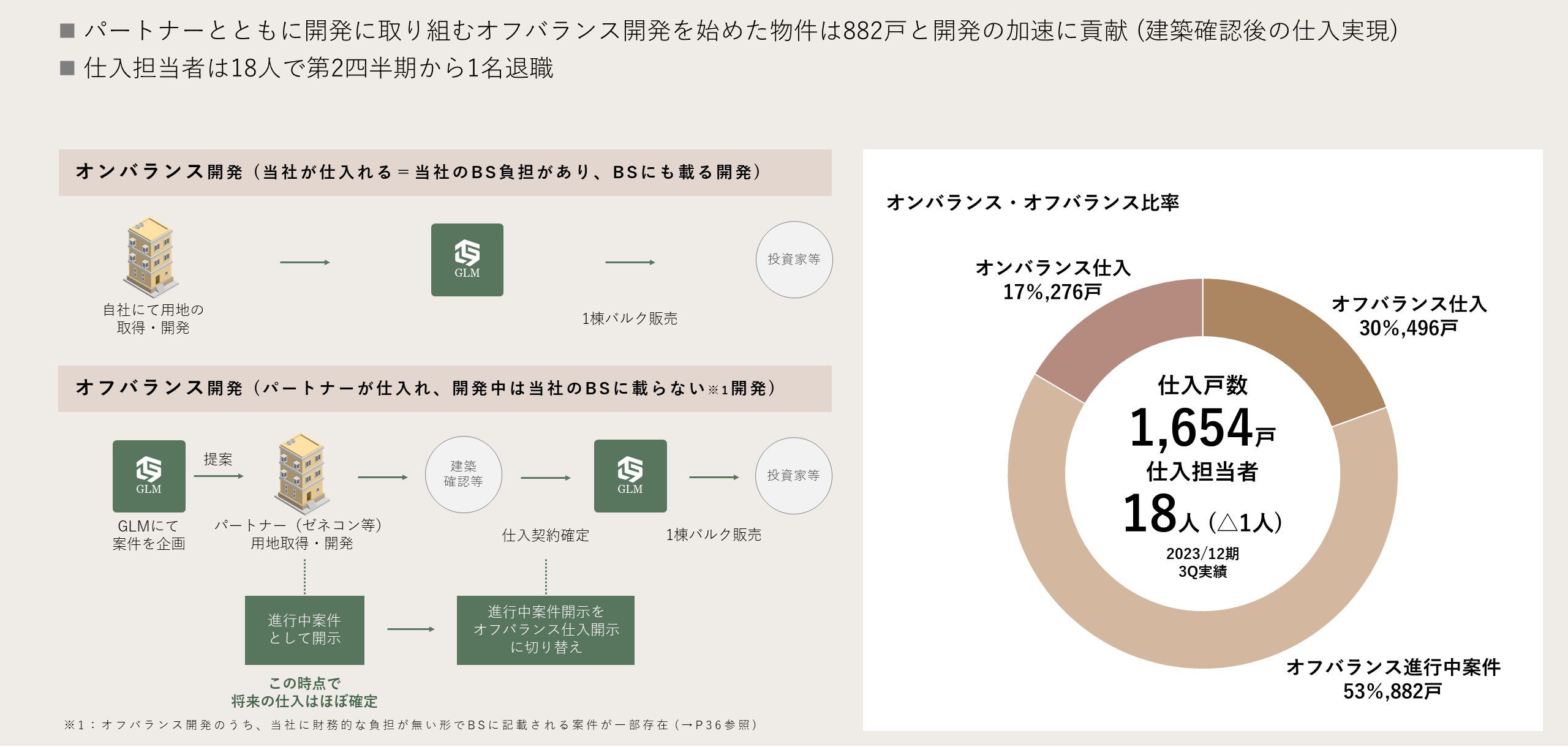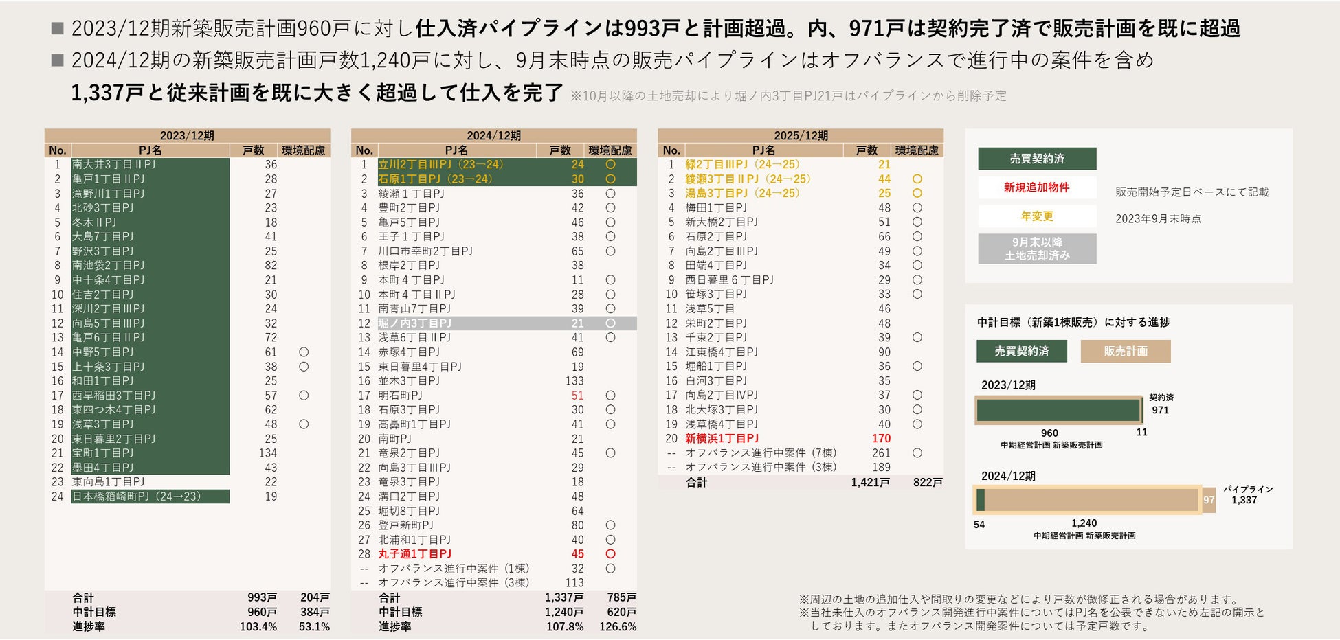 2024年12月期については販売計画戸数1,240戸に対し、現在はパートナー保有中のオフバランス進行中案件を含めると、パイプライン合計は1,337戸と既に2024年12月期の販売計画戸数を大幅に超過し達成しております。今後は2025年以降のパイプラインの積み上げを進めてまいります。