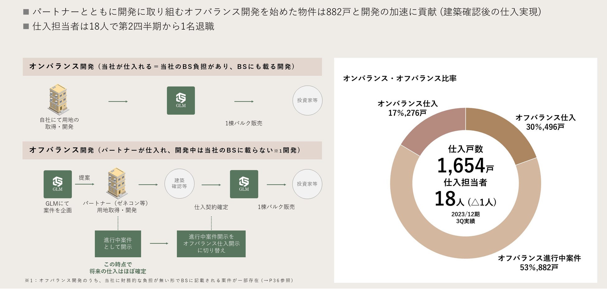 その内、約53%はパートナーとともにオフバランス開発を始めており、開発の加速に貢献しております。