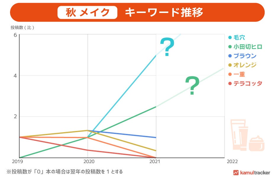 2019年秋〜2021年秋までの傾向を踏まえて、今年の秋も上記5つの企画を主軸にトレンドカラーやトレンドの人物・作品などを取り入れながら人気を伸ばし続け、その中から派生した新たなムーブメントが生まれるのではないでしょうか。