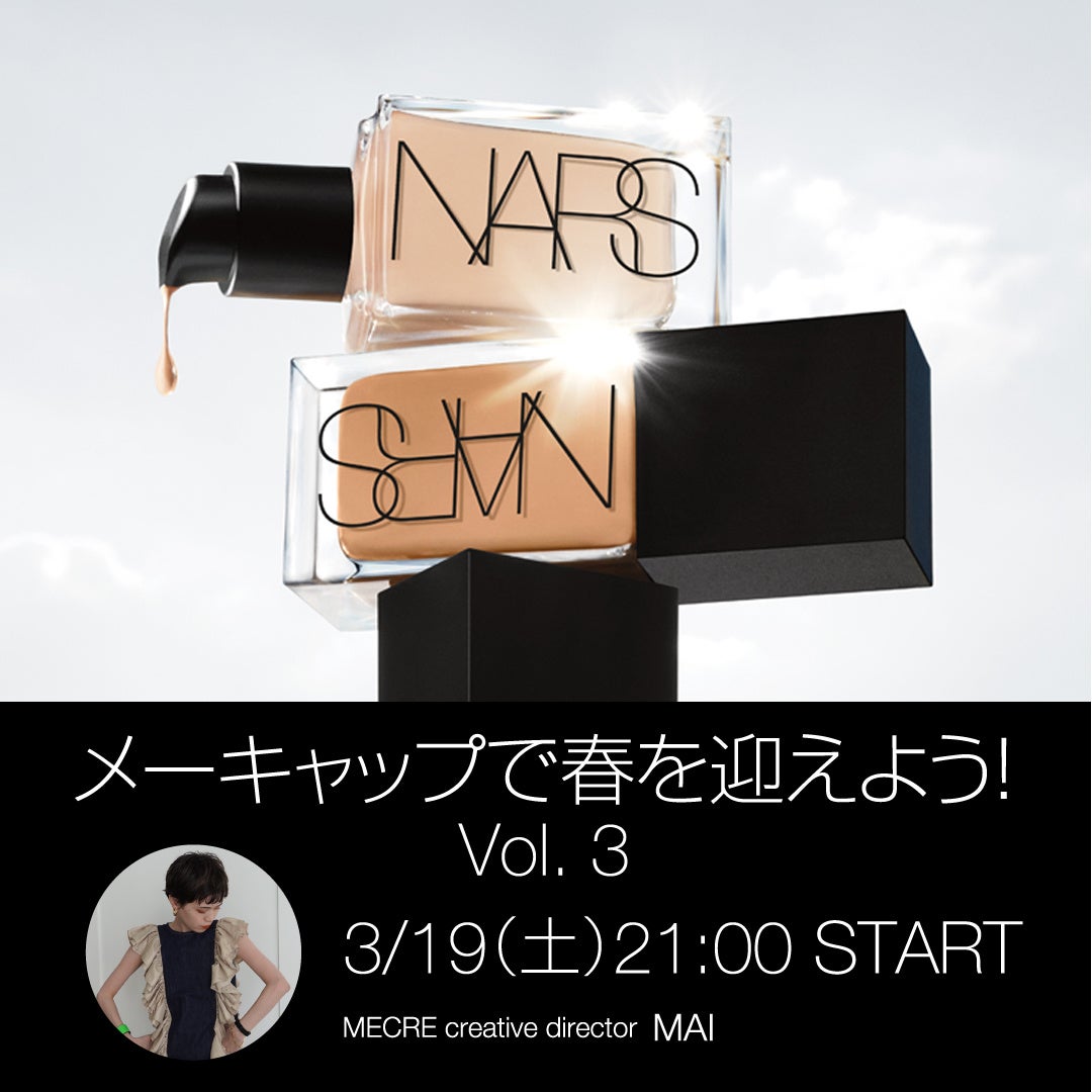 3月19日(土)21時より、MECRE クリエイティブディレクター MAIさんがNARSの春新アイテムを中心に「メーキャップで春を迎えよう!」をテーマにLIVE配信をお送りします。