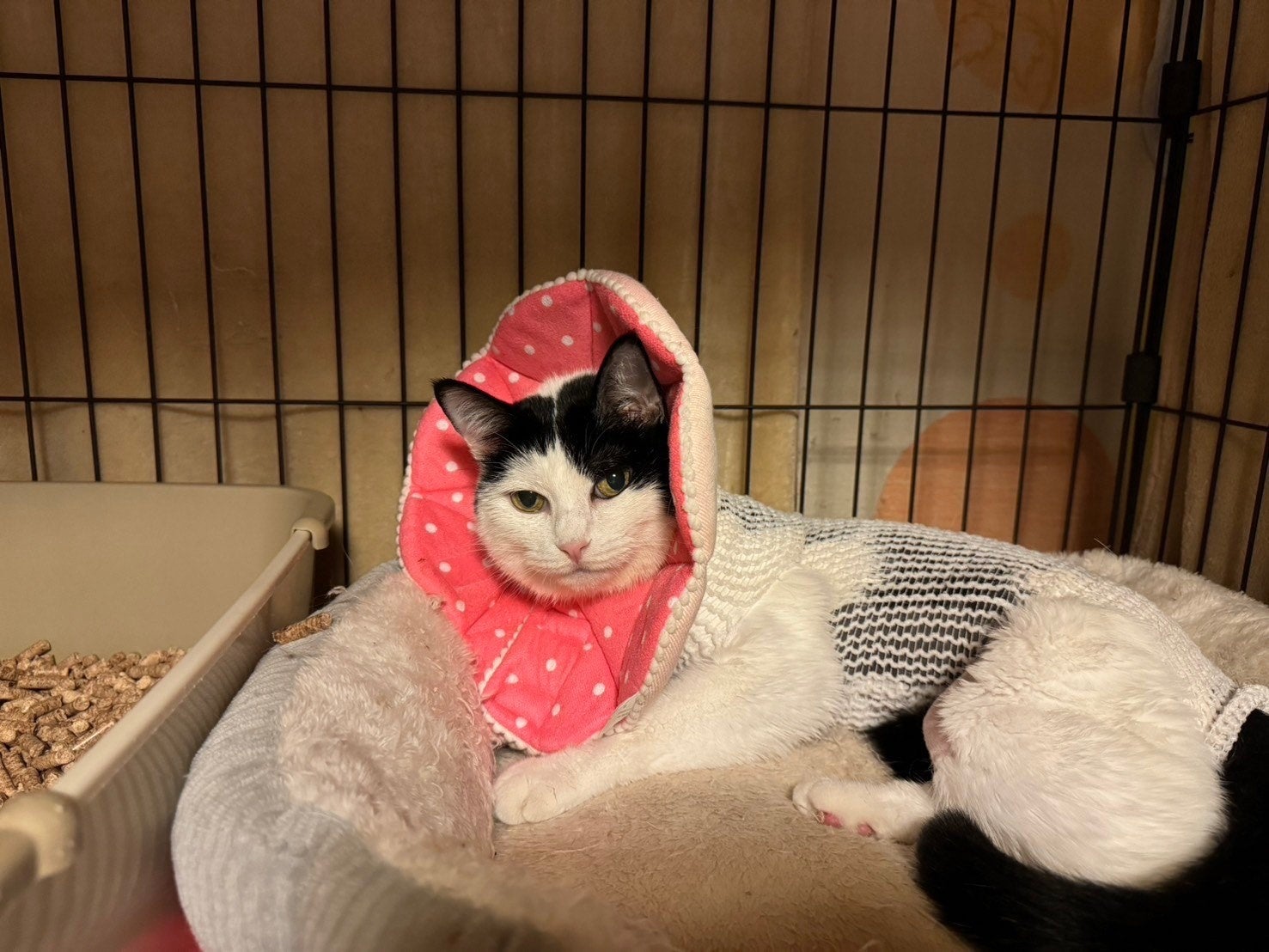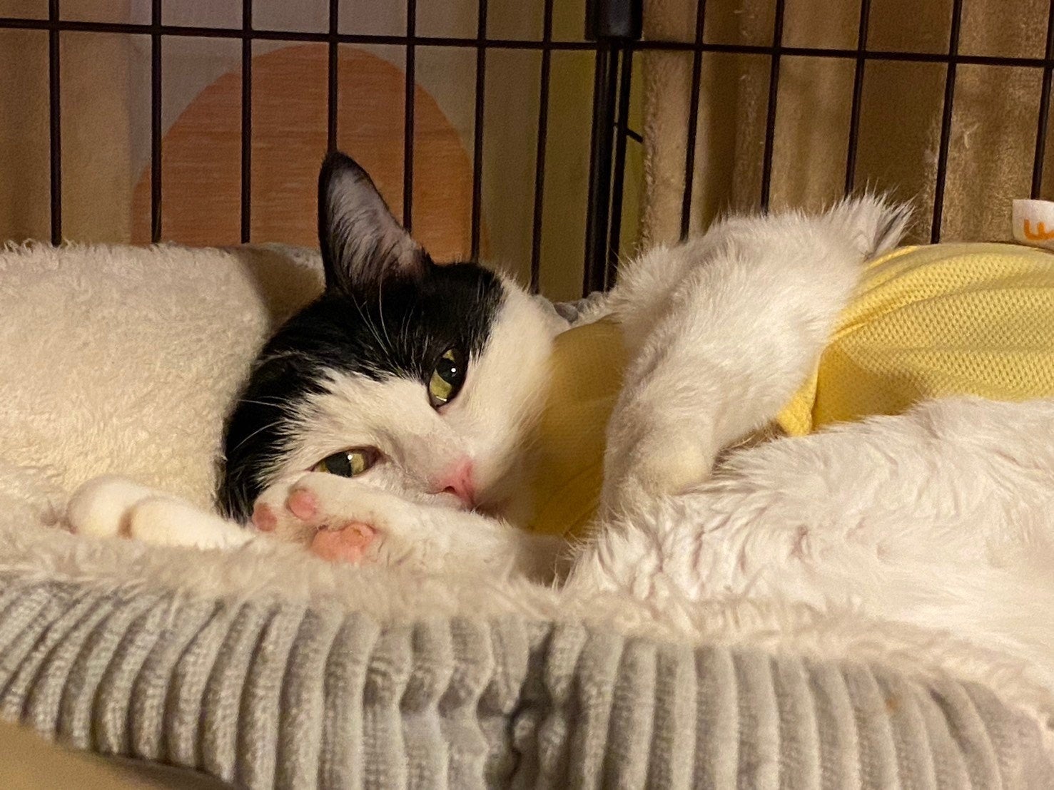 現在、ネコリパハウス高円寺で乳腺腫瘍の手術を乗り越え、治療を頑張っている「ニベア」。
