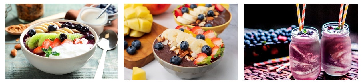 アサイーとヨーグルトはカフェやレストランのメニューでも人気の組合せであり、ヨーグルトにアサイーを注ぐだけで簡単にアサイーボウルをお作りいただけます。ご家庭でもアサイーを楽しむ一例としてぜひお試しください。