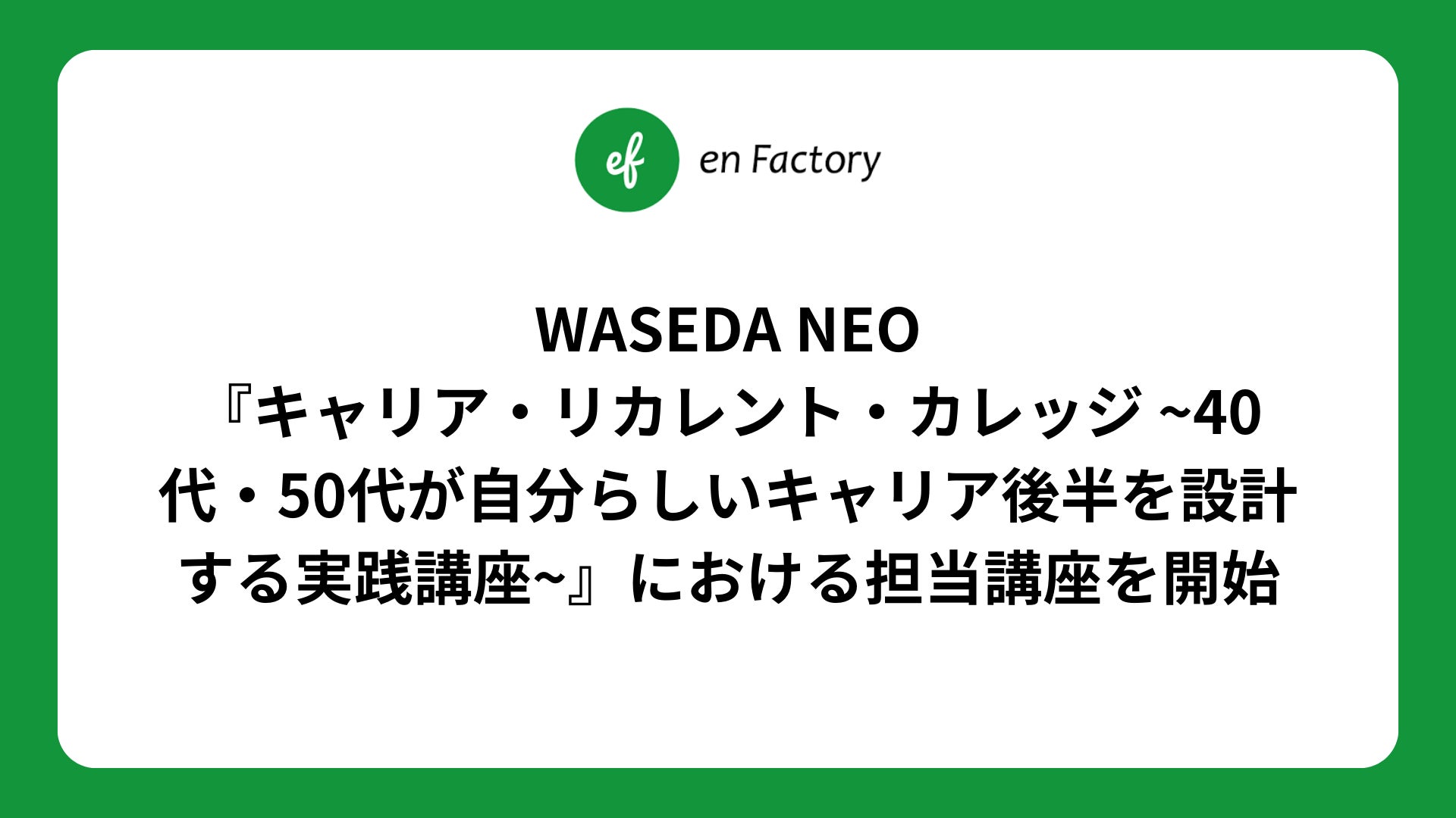 WASEDA NEO『キャリア・リカレント・カレッジ ~40代・50代が自分らしいキャリア後半を設計する実践講座~』における担当講座を2024年1月18日より開始します