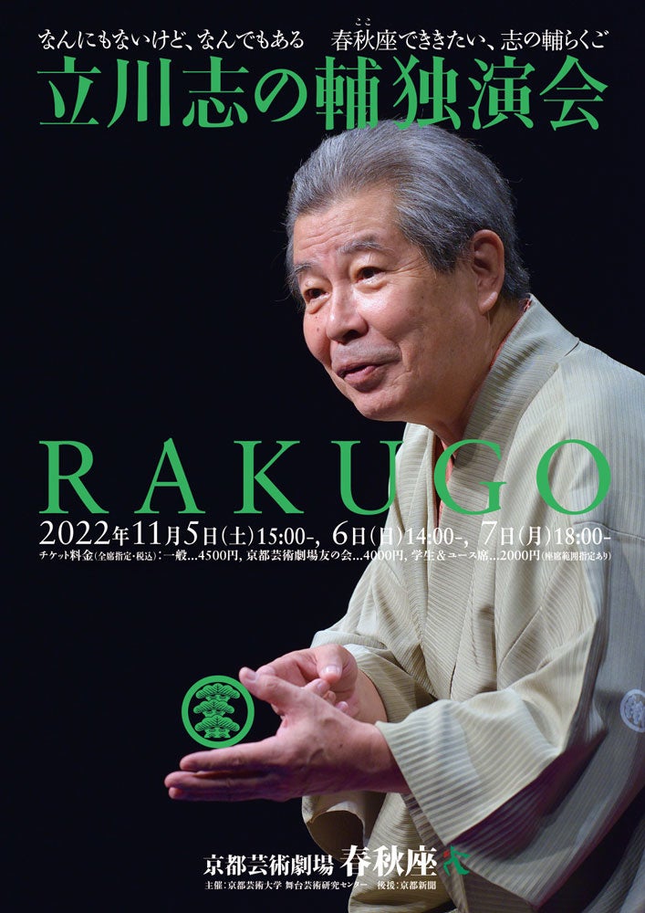 学校法人瓜生山学園 京都芸術大学 舞台芸術研究センターは、2022年11月5日(土)~11月7日(月)に『立川志の輔 独演会』を、京都芸術劇場 春秋座で上演いたします。