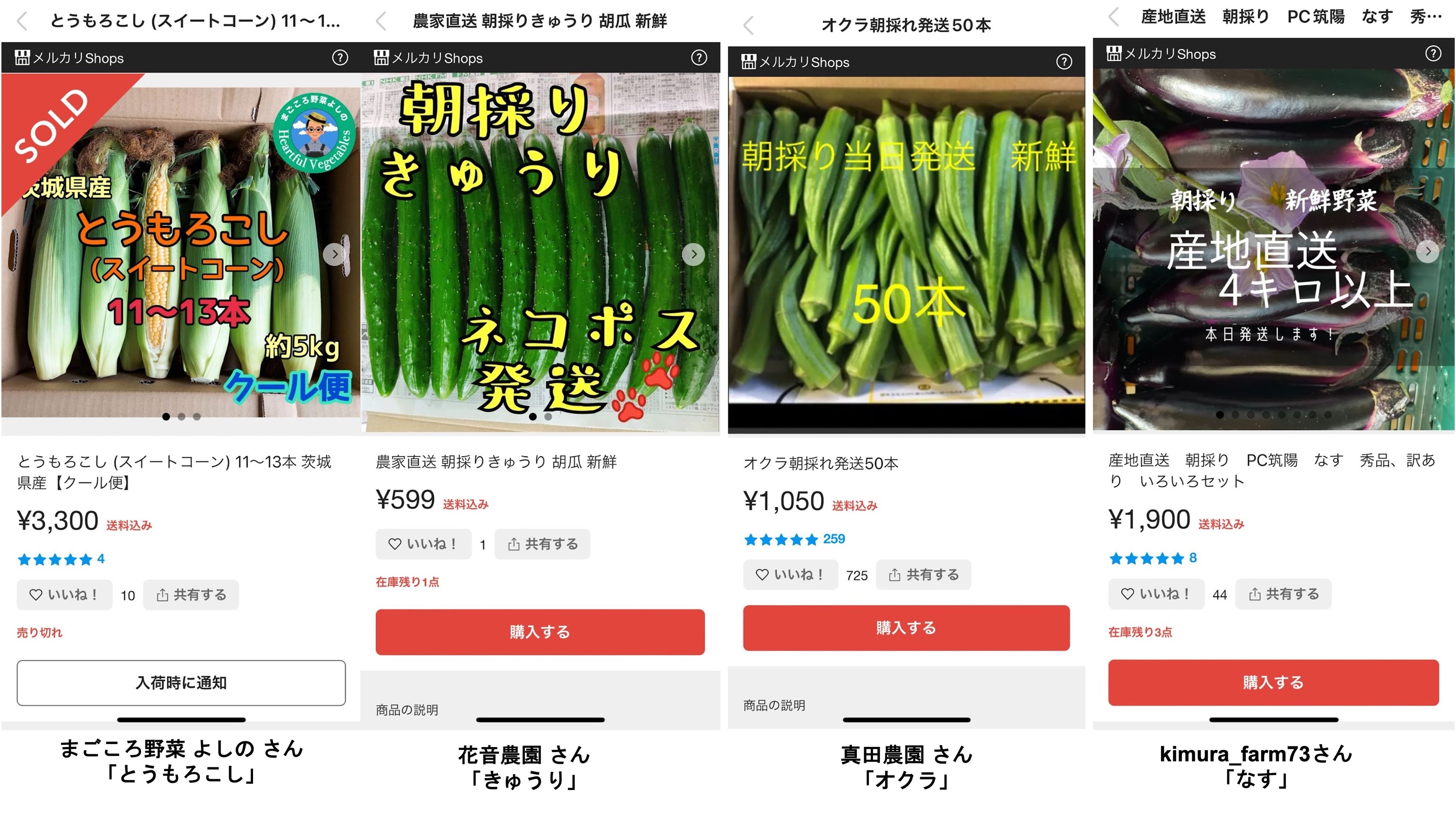 また、「メルカリShops」では、これから旬を迎える夏野菜も多数出品されています。