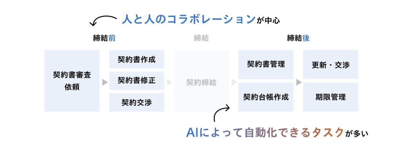契約業務には、「人」中心で進める業務と、「AI」によって自動化できる定型業務が存在します。