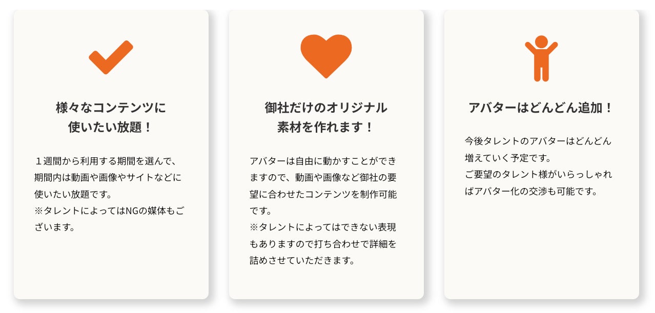 ・契約期間中、タレントのアバターを様々なコンテンツに使いたい放題!