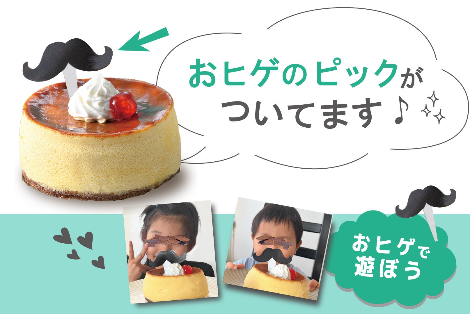 商品にはトレードマークである「おひげ」のピックがついています。ケーキに挿してかわいい!写真に撮って盛り上がること間違いなし!家族や友人とわいわい楽しめます。
