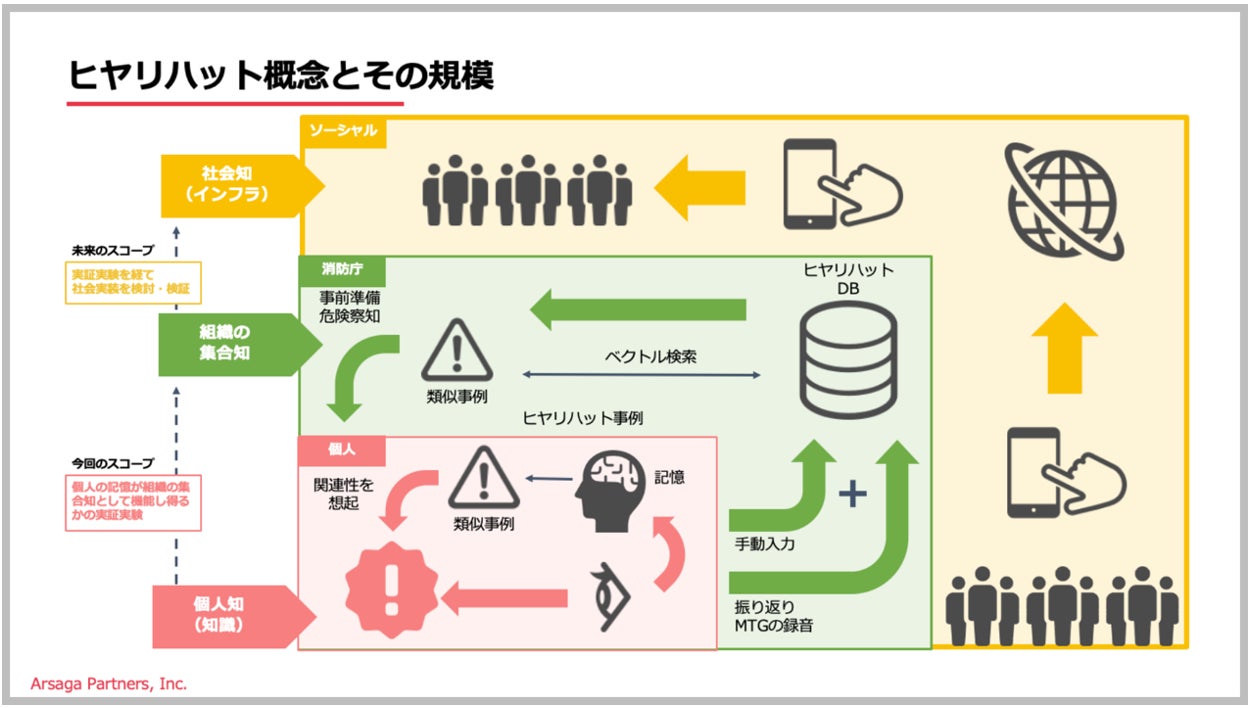 それに対し、今回の提案では、ヒヤリハットデータベースを構築し、他者の情報や記憶を活用することで、第三者のヒヤリハットへの貢献を目指す新たな試みを行います。これにより、個人の知識を集合知へと進化させることを目指しています。