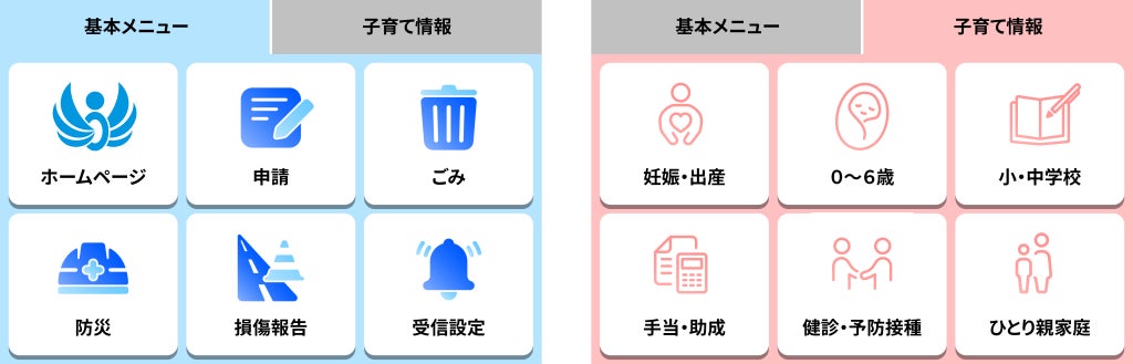 「基本メニュー」「子育て情報」のメニューから様々な情報を検索することが可能になりました。