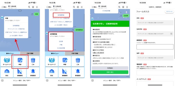住民向け行政手続きがLINE上で完結する「電子申請」