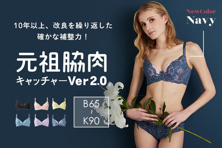 脇と背中のお肉を集めつづけて10年以上!シリーズNo.1の補整力を誇る実力派ブラジャー「元祖脇肉キャッチャー®︎Ver2.0」に秋の新色・ネイビーが登場。